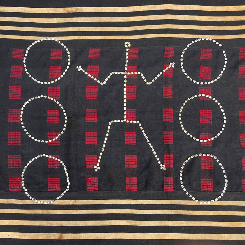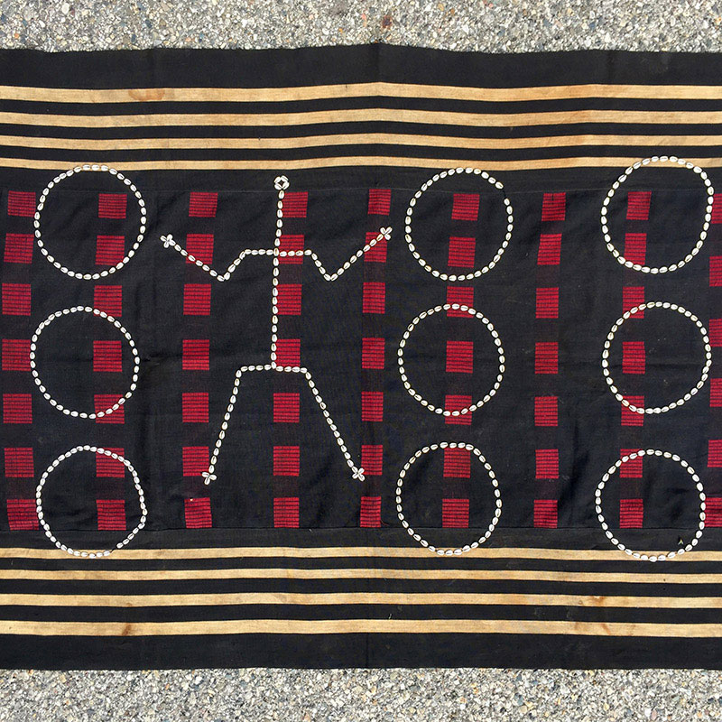 Naga Tribal Prestige Cloth with Cowrie Shell Figure and Circles, Circa 1960 (#18-118)